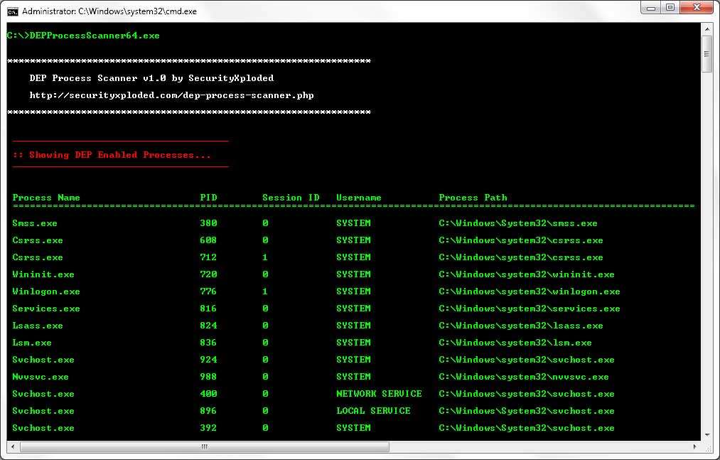 DEP Process Scanner is the free command-line tool to scan and show all the DEP enabled Processes.