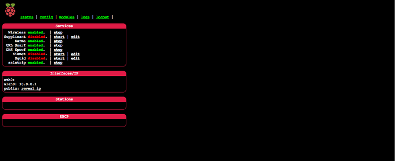 FruityWifi is a wireless network auditing tool based in the wifi Pineapple. The application can be installed in any Debian based system adding the extra packages. Tested in Debian, Kali Linux, Kali Linux ARM (Raspberry Pi), Raspbian (Raspberry Pi).